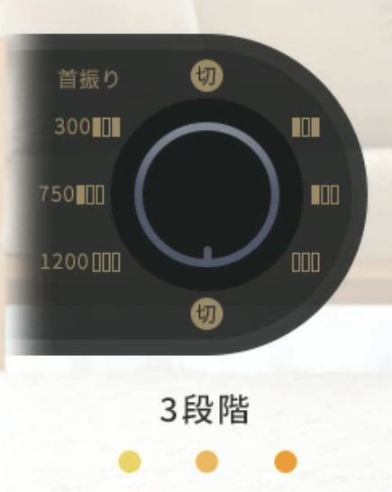 450Wと900Wの2段階切替と自動首振り機能を搭載し、一人用から少し広い範囲まで対応できます 。