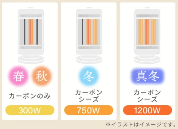 「消費電力(W数)=暖かさの強さ=電気代」